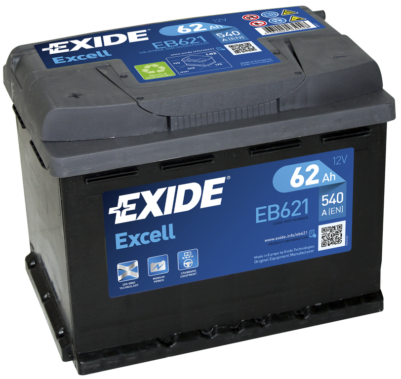 Аккумулятор Exide Excell EB621 12V 62Ah 540A L+